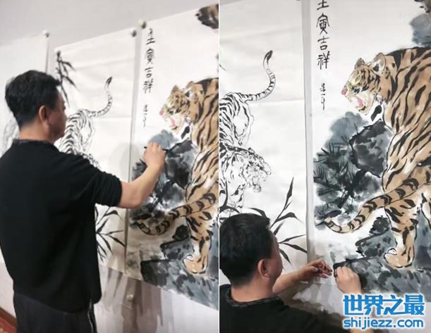 朱军豪宅内画老虎庆新年!蹲地下身形瘦太多,撸起袖子姿势用力 ...