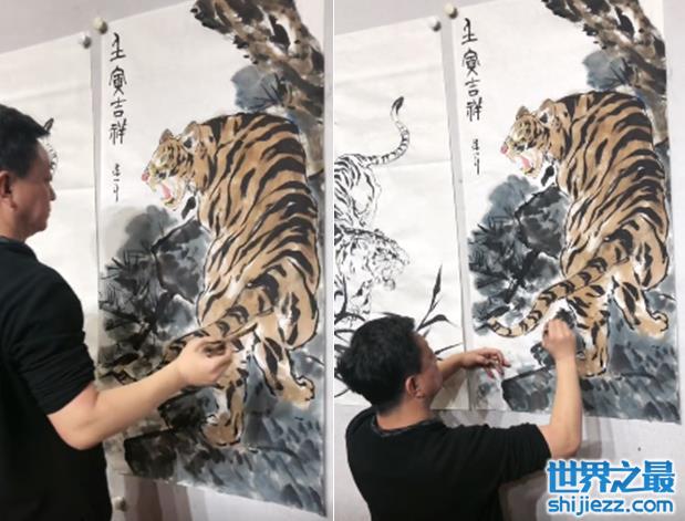 从画面来看,朱军所画的这幅老虎图栩栩如生,不管是色彩上还是形态上,绘画功力可见一斑。虎年画虎,也蕴含了朱军对新一年的美好新期望。