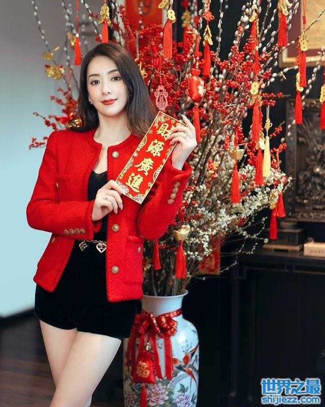 方媛分享自己在家中给大家拜年的照片,手拿小福字的她穿着红色的衣服,然后打扮精致地跟大家拜年啦。