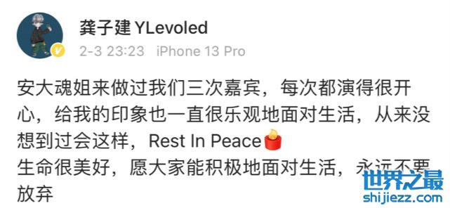 翻看安大魂的社交账号,最后一条动态停留在1月31日,她分享了自己演唱的歌曲,并在评论区感谢喜欢她的人,看起来那么活泼开朗的安大魂,没想到一直被抑郁症困扰,她的离去太令人感到惋惜与悲伤了。