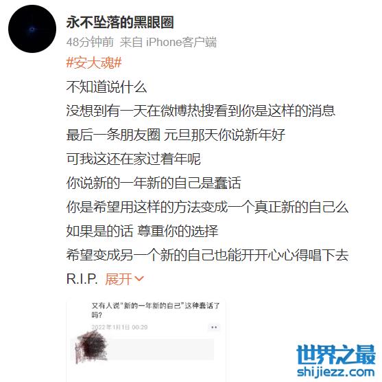 另外,好友也公开了安大魂最后一条朋友圈动态,时间显示是在2022年元旦这天,她发文给好友送新年祝福,语气略显消极,能够看出此时的她状态就已经很差很消极了。