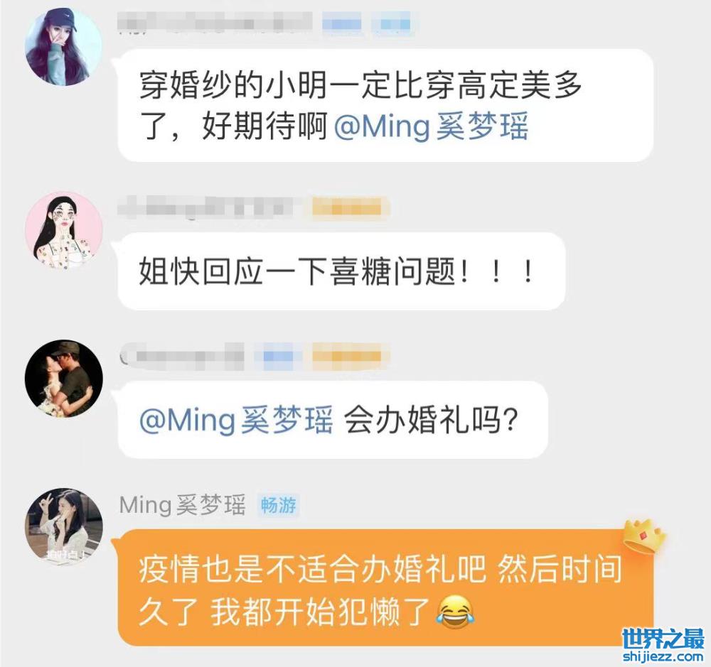 另外,粉丝希望奚梦瑶在疫情结束后将婚礼提上日程,她本人表示“亚历山大”,还直言看看有没有合适的机会再办婚礼,一切也都看缘分。