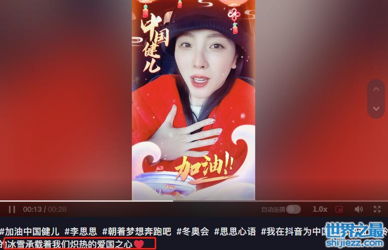 视频最后,李思思表示希望冷冷的冰雪更能凸显我们炽热的爱国之情,还对着镜头握紧拳头为中国健儿们奋力打气加油。可爱的是,李思思的俩儿子虽未出现在镜头面前,但也在车内坚定喊着“加油加油”,稚嫩的儿童声令人倍感温暖动容。对于儿子的欢呼,李思思也是咧嘴大笑一脸幸福。