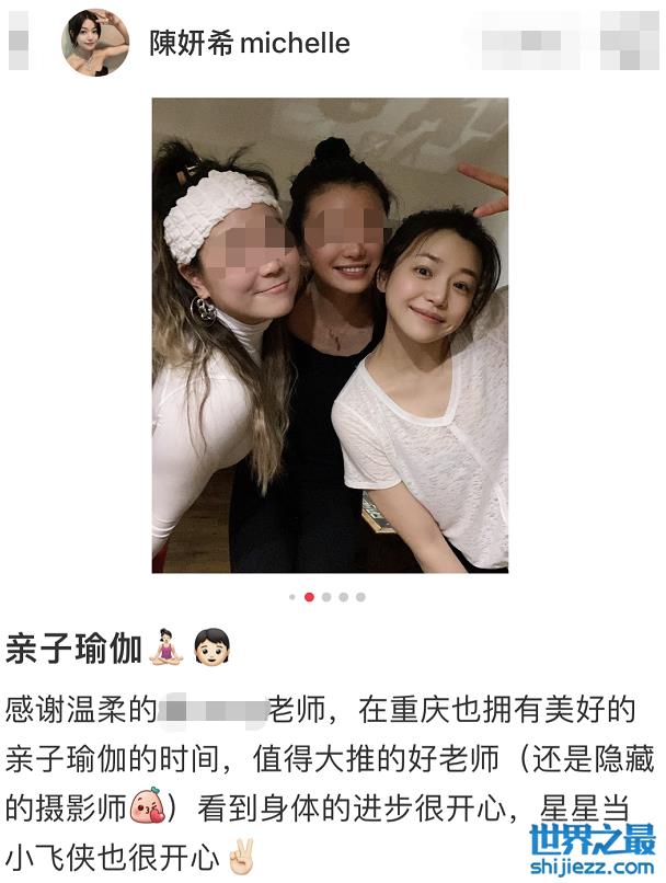 近日,陈妍希在个人社交平台晒出了自己在儿子小星星的陪伴下练瑜伽的照片,并配文道“看到身体的进步很开心,星星当小飞侠也很开心”。从照片中不难看出陈妍希皮肤白皙笑容甜美,状态非常不错。
