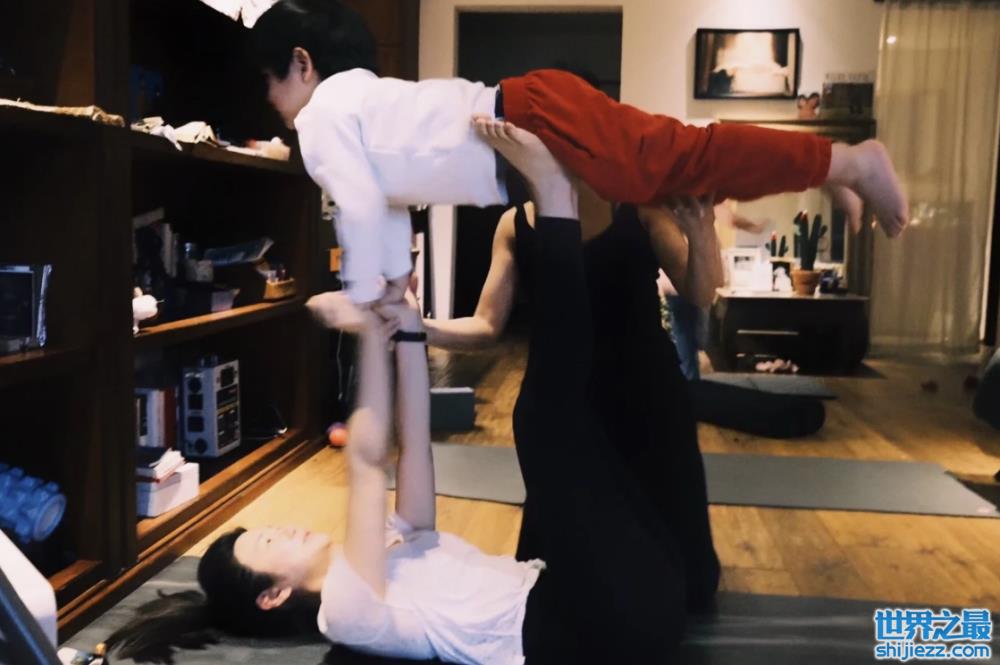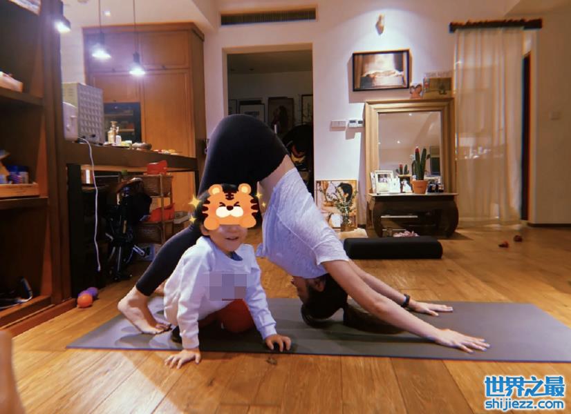 陈妍希豪宅内做瑜伽!双腿举起儿子一脸轻松,趴地上秀身材曲线 ...