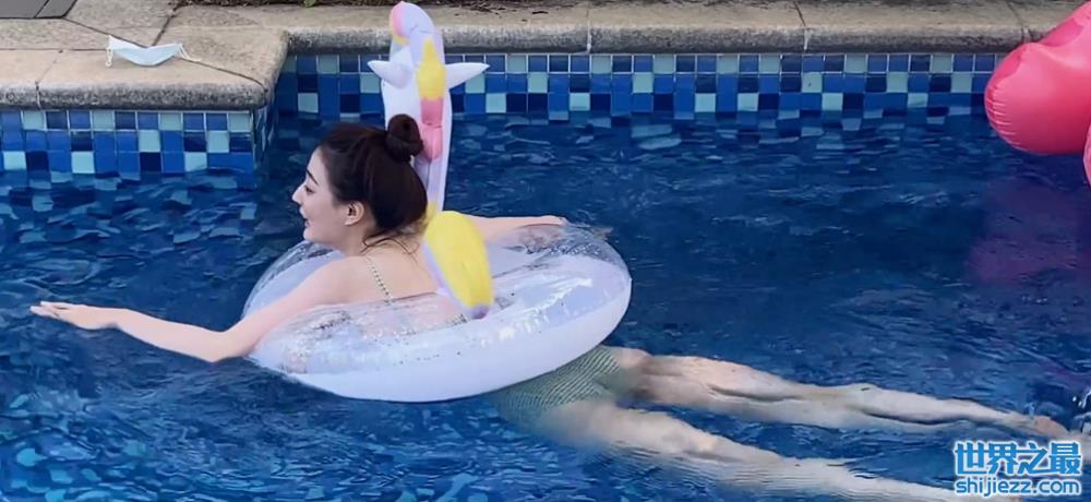 穿着比基尼泳装在泳池里游泳潜水时,整个人更是宛若一条“浪里白龙”,身形修长,皮肤白嫩,一双大长腿更是让人羡慕不已。