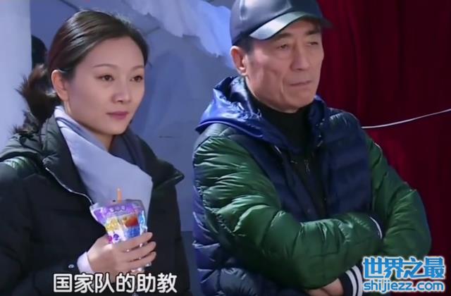 张艺谋对妻子十分体贴,一边看着女儿滑冰,一边转头耐心地向妻子解说教练的身份,妻子不时点头回应,夫妻俩相处温馨自然,一看就是老夫老妻。
