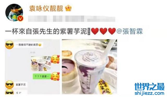 之前袁咏仪在自己的社交平台发文秀了“一杯来自张先生的紫薯芋泥”。同时,还晒出了两人的聊天记录,原来所谓的“紫薯芋泥”的谐音就是“只属于你”。不得不说,张智霖真的是太会了。