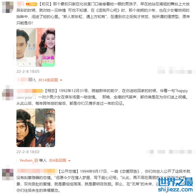 最令人惊喜的便是袁咏仪粉丝的评论,下面一排排都是记录袁咏仪与张智霖的爱情故事,真的是让人感动。