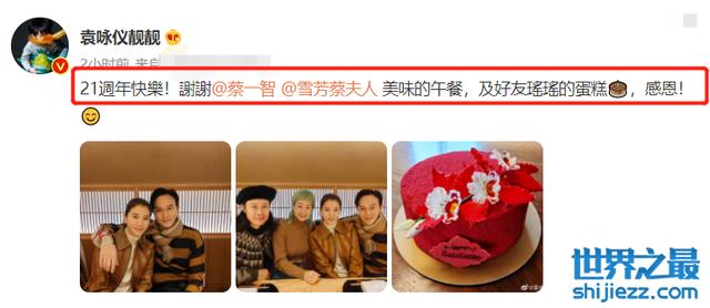 近日,袁咏仪在社交平台上更新一则动态,配文道:“21周年快乐!谢谢蔡一智,雪芳蔡的美味的午餐,及好友瑶瑶的蛋糕”。其中,袁咏仪与张智霖夫妇俩人相爱21年的合影,引发网友热议。