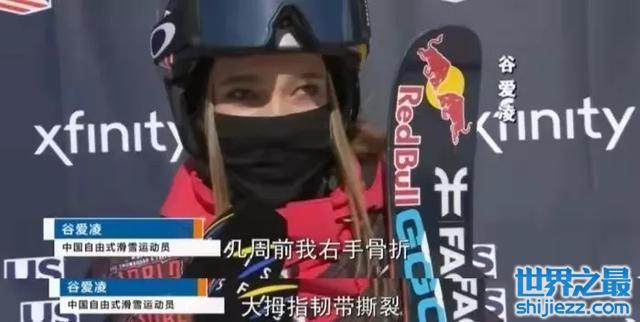 2021年,一次训练中发生意外,谷爱凌右手粉碎性骨折、大拇指韧带撕裂。