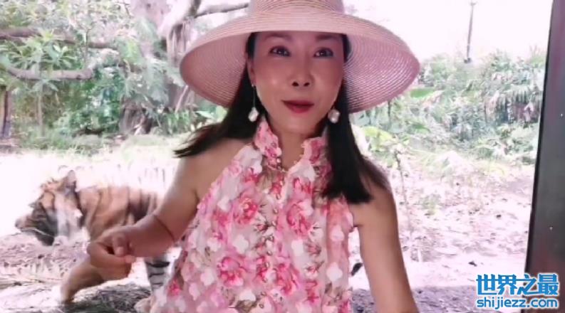 55岁田震与老虎同框!穿无袖粉上衣秀丰腴身材,脸上两坨腮红抢眼 ...