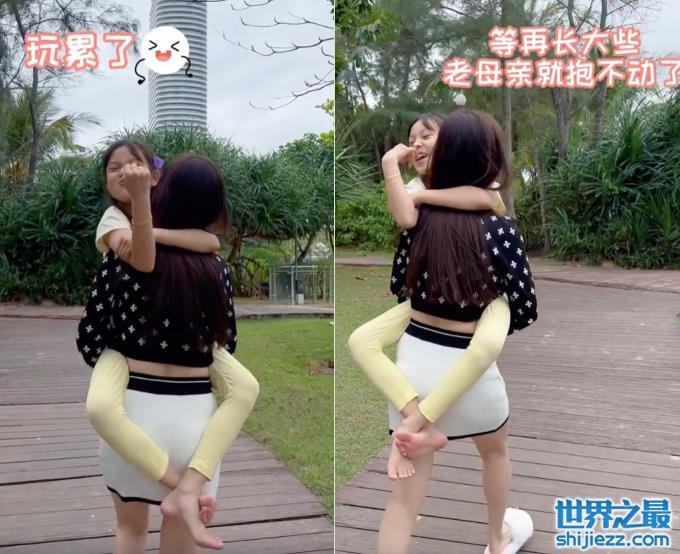 筋疲力尽后的甜馨最后只能依靠母亲抱回酒店休息,不过小孩子即便玩累了依然有搞怪后的精力,面对镜头甜馨主动撸起袖子秀起自己的手臂,撅嘴做奇怪表情十分逗乐。其母亲则是感叹道等再长大些,老母亲就抱不动了。