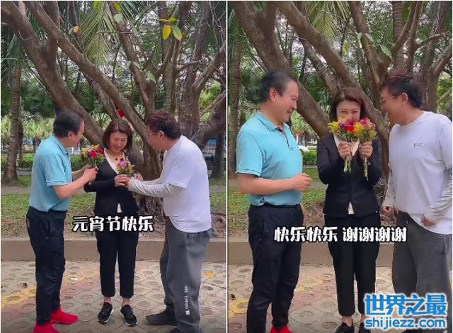 闫学晶穿V领抱野花拍照!腰身纤细气质佳,王为念在一旁打架闹腾 ...