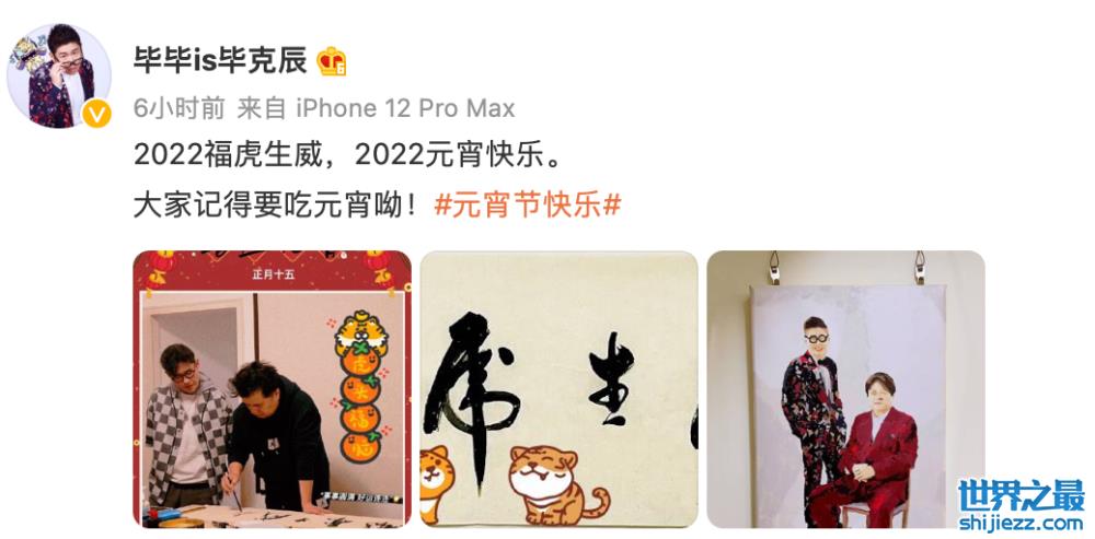 近日,知名艺人毕福剑的侄子在自己的社交平台上分享了三张照片。照片中毕福剑也罕见出现,只见他手握毛笔写字的模样十分认真。毕福剑侄子配文说道“2022福虎生威,2022元宵快乐。大家记得要吃元宵呦!”。