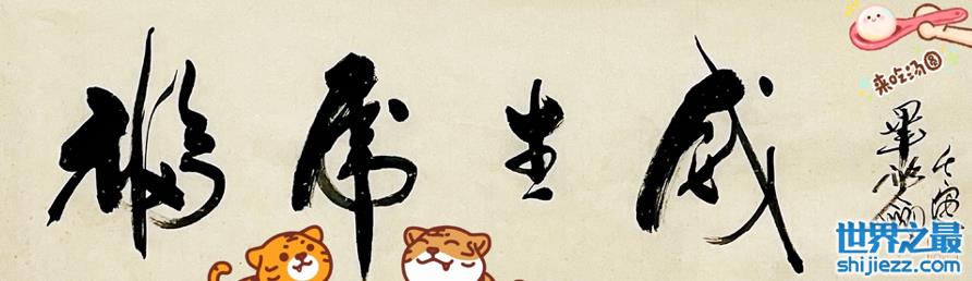 最后毕福剑写字完毕之后,还晒出了他写完的作品,只见四个大字“福虎生威”印在纸上, 一笔笔铿锵有力。
