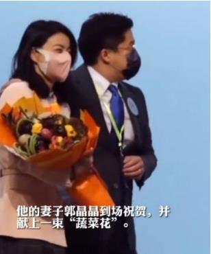 前段时间在霍启刚担任重要职位的仪式上,霍启刚身穿黑色西装,十分板正。而郭晶晶身穿白色西装,优雅得体地将手中的“蔬菜花”送给了霍启刚。霍启刚非常自然地揽过老婆的肩膀,动作亲昵,用手指着花,两人在台上开怀大笑。