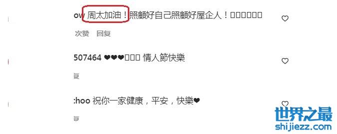 粉丝们留言:周太加油,照顾好自己照顾好一家人。情人节快乐,祝你一家人健康平安快乐。