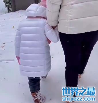 照片中的她们都是身穿雪白的羽绒服,保暖又时尚,在雪地里踩出一个又一个的脚印,闫学晶细心地牵着小女孩的手,十分的和蔼慈祥。这样和谐安详和家人共处的时间谁不喜欢呢?