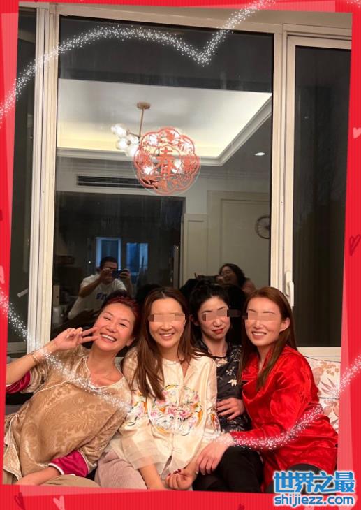 当天,王玲还晒出同好友的聚会合照。今年41岁的王玲保养得当,一头红发稍显时髦,身穿金色家居服露出一截锁骨,素面朝天笑容满脸满面红光。因为喜爱美黑风格,所以肤色同一旁的友人们对比明显。