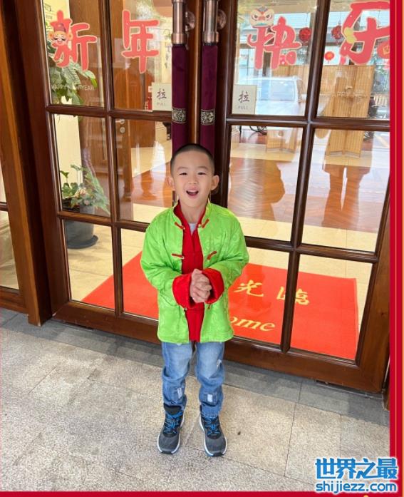 其中还有一张高曙光6岁儿子的近照,只见小家伙身穿绿色马甲脚踩运动鞋,对镜双手握拳张大嘴一脸顽皮样。