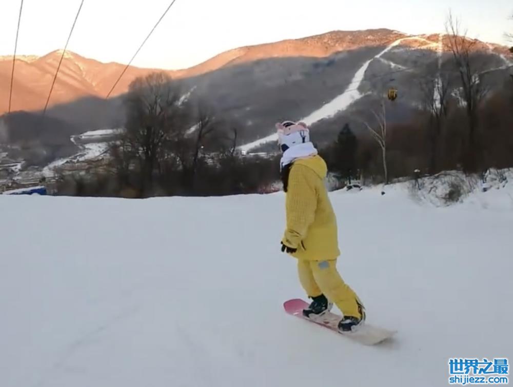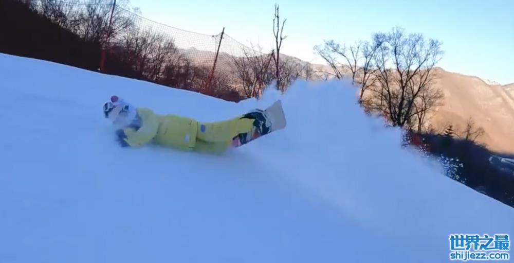 杨颖刚开始的滑雪之旅并不顺利,在视频中共计摔了八次,要么是直接正面朝雪地摔去,要么是摔得仰面朝天,看起来摔的非常疼。