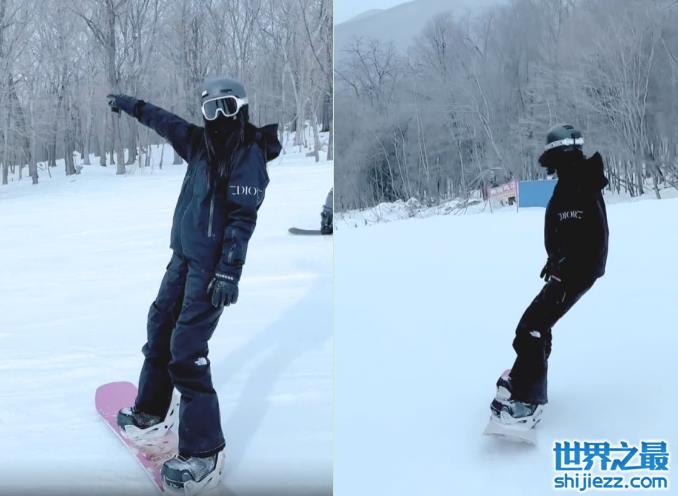 在视频中,杨颖刚开始尝试滑雪时看起来并不熟练,直接重重地摔在雪地上,雪地上的雪粒直接被弄的飞扬起来。