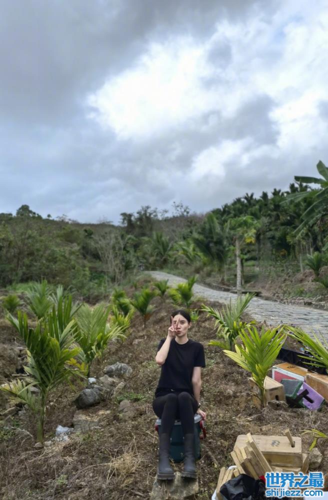 宋佳还分享另一张照片,同样是坐在塑料桶上是在一个小道旁的土地上,四周的物品散乱随意地摆放在地上,宋佳高举单手,侧脸看向镜头看起来心情很是愉悦。