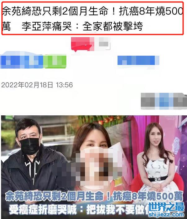 李亚萍与丈夫余天的二女儿余苑绮在2014年就发现出直肠癌,并且在余苑绮抗癌八年的时光里,就动了9次刀,做了将近70次化疗。现如今,她的肺部以及肝脏被切到只剩下一小部分,无法再动手术。而且现在的情况愈发严重,余苑绮的大肠里疑似冒出新的东西,被医院估计只剩下2个月的生命,李亚萍知道后彻底崩溃。