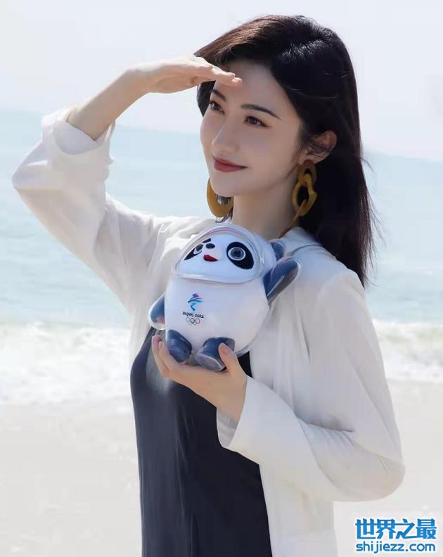 33岁景甜抱冰墩墩海边合照!穿V领锁骨抢眼,皮肤白皙五官精致 ...