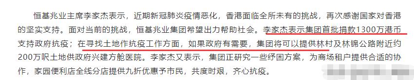而香港几个富豪大家族也陆续以各种方式出力,在抗疫方面义不容辞。