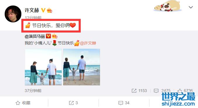 随后,许文赫转发马丽的V博,并配文:“节日快乐,爱你俩”,这两夫妻的互动,真的是简单有意思,每个字中都透露着温馨幸福。