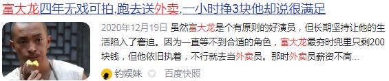 其实富大龙哪怕稍微不那么佛系,经济方面也不至于如此拮据,因为他有演技啊,甚至演技相当不错。