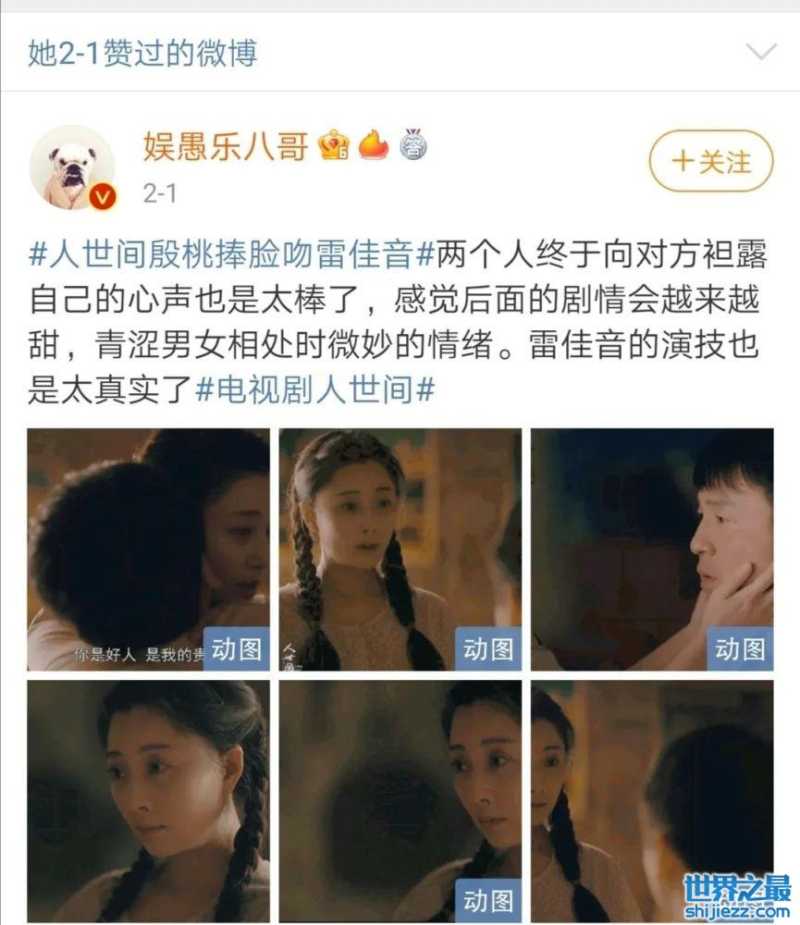 翟煦飞社交平台最近一条跟雷佳音有关的动态,还是点赞雷佳音跟殷桃在《人世间》的一场亲密戏。
