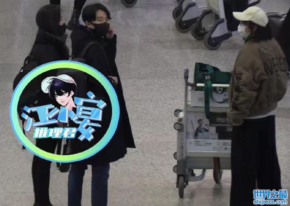黄轩的助理在一旁帮忙推着行李,黄轩和女友在一旁站着,应该是在等待出发,照片中女方的腿部十分苗条纤细。