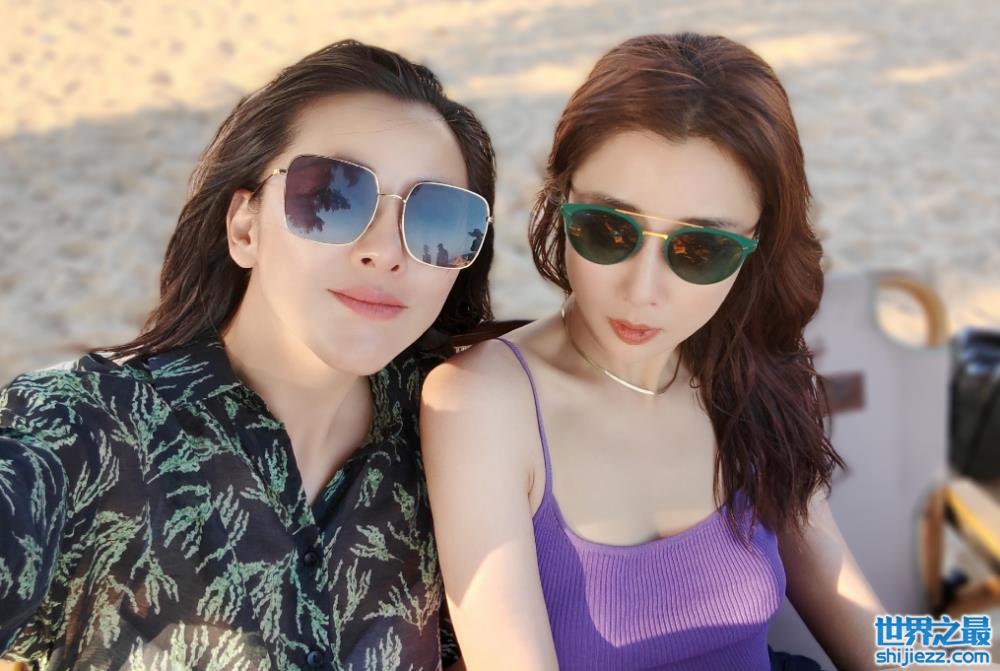 黄小蕾这一次三亚冲浪之旅也不是一个人去的,和她一起的还有好朋友殷桃,两人戴着墨镜,在在沙滩下自拍,两位美女一起同框十分赏心悦目。