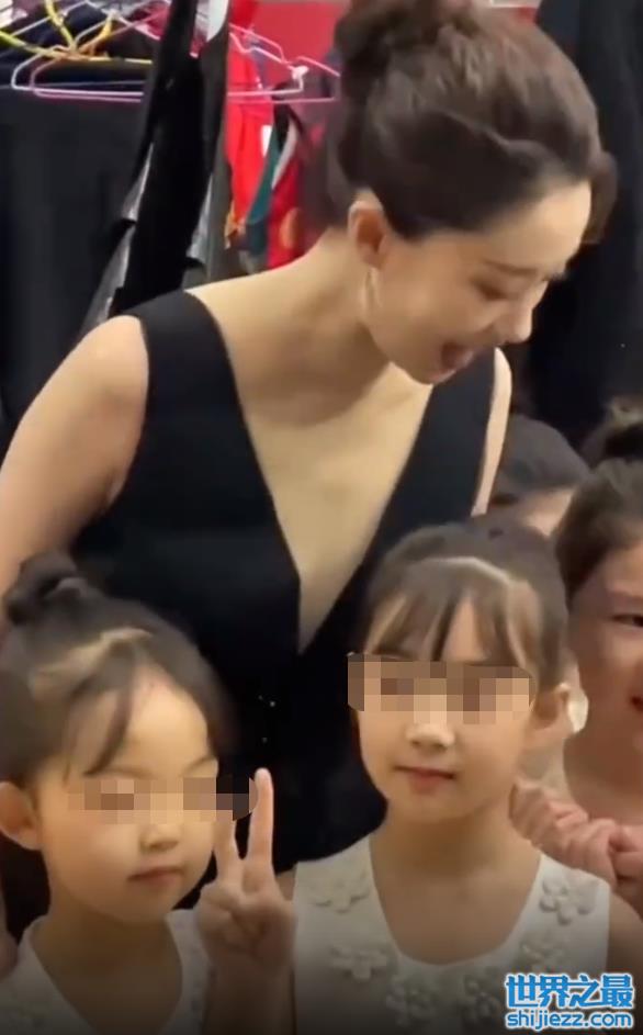 小演员们一看到张小斐要来跟自己合照,早就摆好了剪刀手的姿势,满心欢喜地期待着与美女姐姐的合照。张小斐也十分温柔地组织着大家,轻声细语地跟小朋友们沟通,看上去相当亲切。