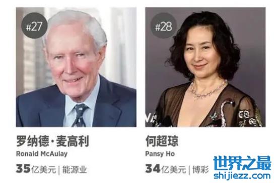 富豪榜中最值得一提的还要数赌王家族,这次排行榜上有3位赌王家族的成员,他们的排名也一直很稳定。赌王何鸿燊的接班人何超琼,以34亿美元居于28位,按照整个排行榜来看,男性富豪还是居多的,何超琼能占据一席之地,足以见得她的手腕和魄力,相信未来也会稳定发挥,更上一层楼。