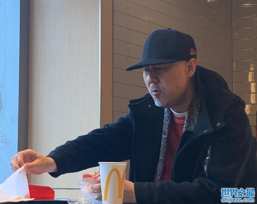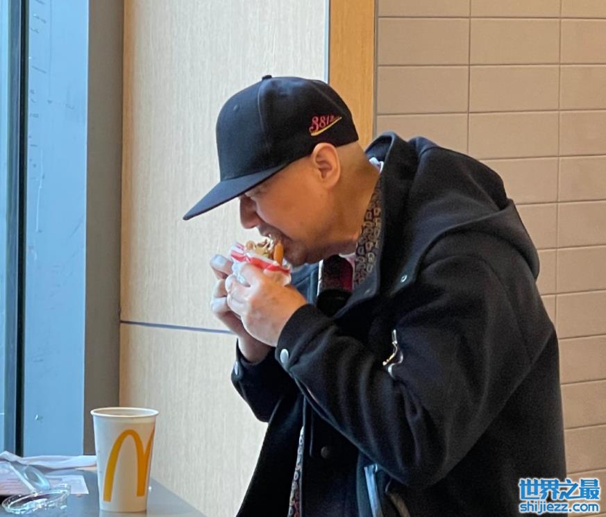 腾格尔现身快餐店被拍!大口吃汉堡闭眼撕咬,嘴角一圈白胡子明显 ...