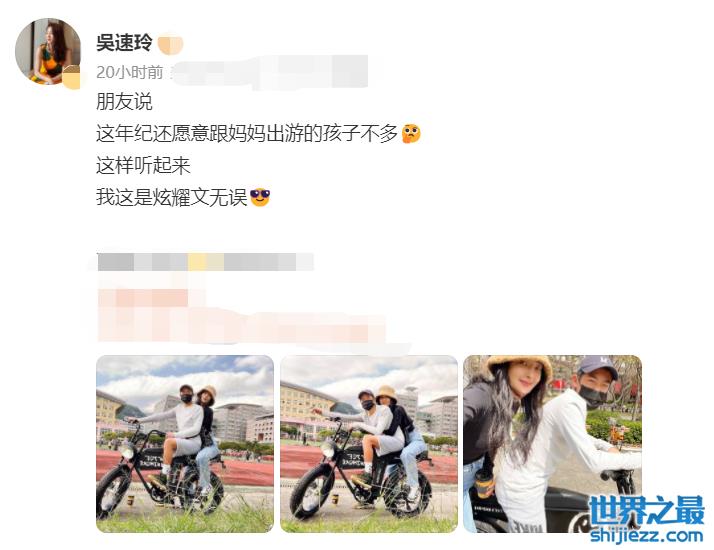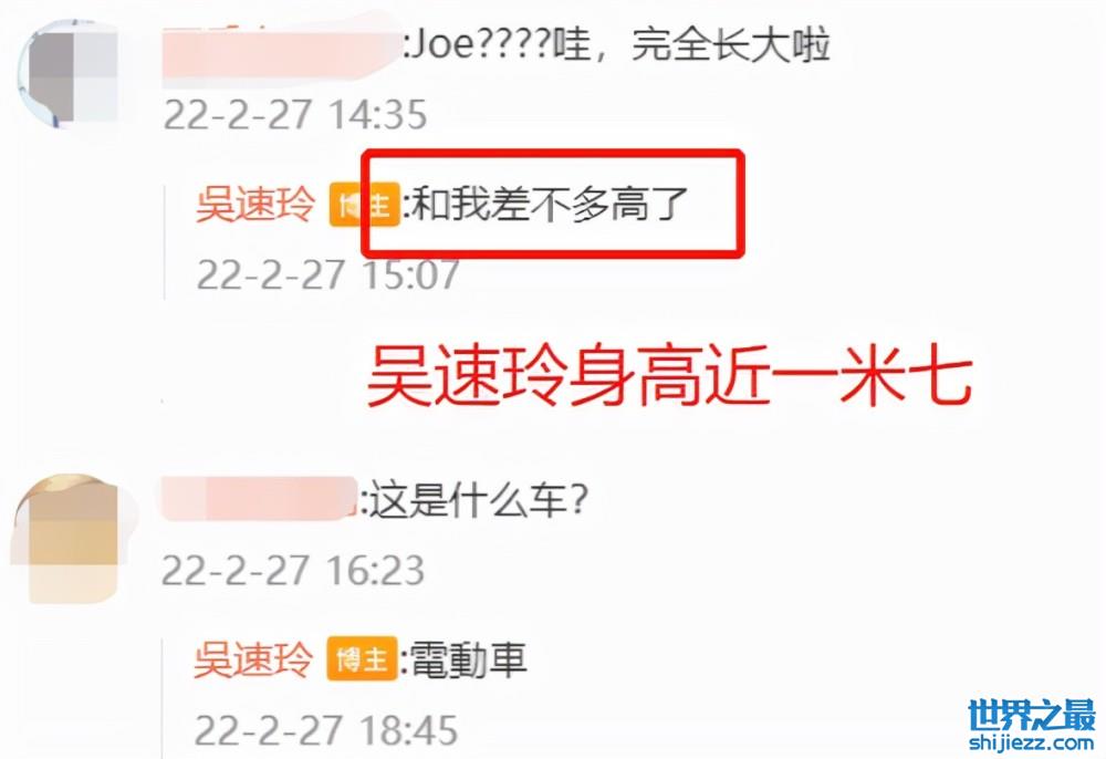 网友看到Joe的照片纷纷留言,有网友称Joe完全长大啦,吴速玲也骄傲的回复网友说和我差不多高了,13岁有将近一米七的身高确实令人羡慕。有些网友的关注点在Joe骑的车子上,吴速玲也回答说这是电动车,解答了大家的疑惑。