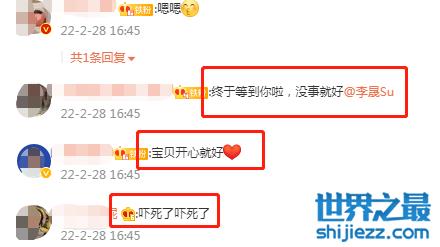 李晟之所以会回应, 是因为早前疑似其好友在账号上透露她和老公李佳航离婚的消息。她亲切喊李晟为燕子,称“希望你的幸福能再次在你的生活里出现”,同时她疑似还内涵男方至今完成对女方的承诺——举办一个幸福的婚礼。