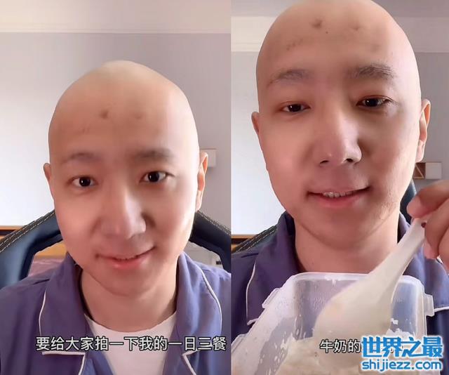 自从患病后,于笑经常录制视频给关心他的粉丝分享自己的近况,视频中因为要接受治疗于笑剃光了头发,也能看出额头部分还有一些淤青,不过他还是兴致勃勃的和粉丝们分享一日三餐,面对治疗保持乐观的态度。