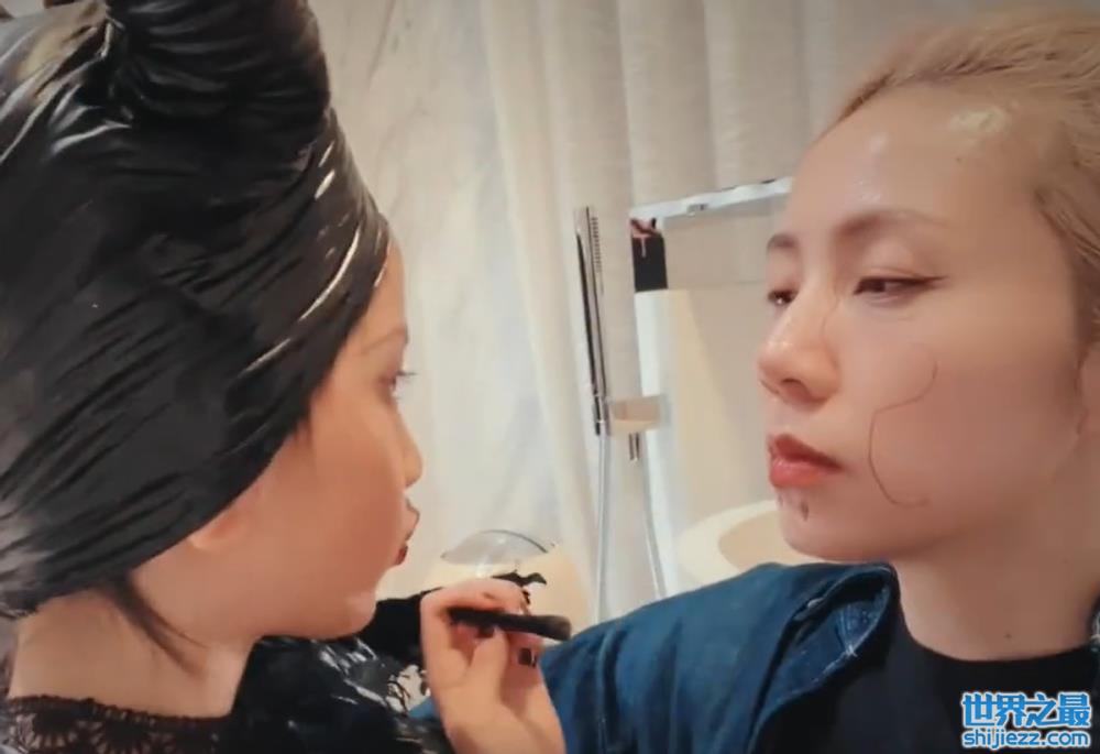 在万圣节时,孙莉的小女儿装扮成小魔女的样子,一旁孙莉也耐心地让女儿帮自己化着妆,画面中小女儿嘟起嘴的样子十分可爱,侧颜有些像姐姐多多。