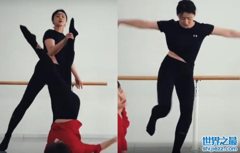在舞蹈中,孙莉抓着一起跳舞的伙伴的脚,帮助其完成舞蹈动作,我们可以清晰地看到她颈部突起线条,看得出来孙莉对待舞蹈十分认真、卖力。随后孙莉甩手转了几个圈,动作十分优美,不难让人看出她的舞蹈功底。