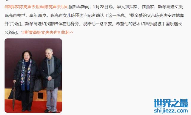 2月28日,斯琴高娃的丈夫著名指挥家陈亮声在瑞士因癌症去世,享年89岁。