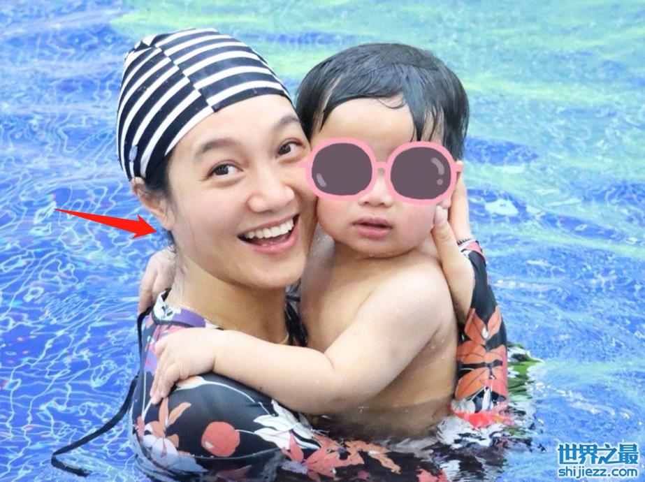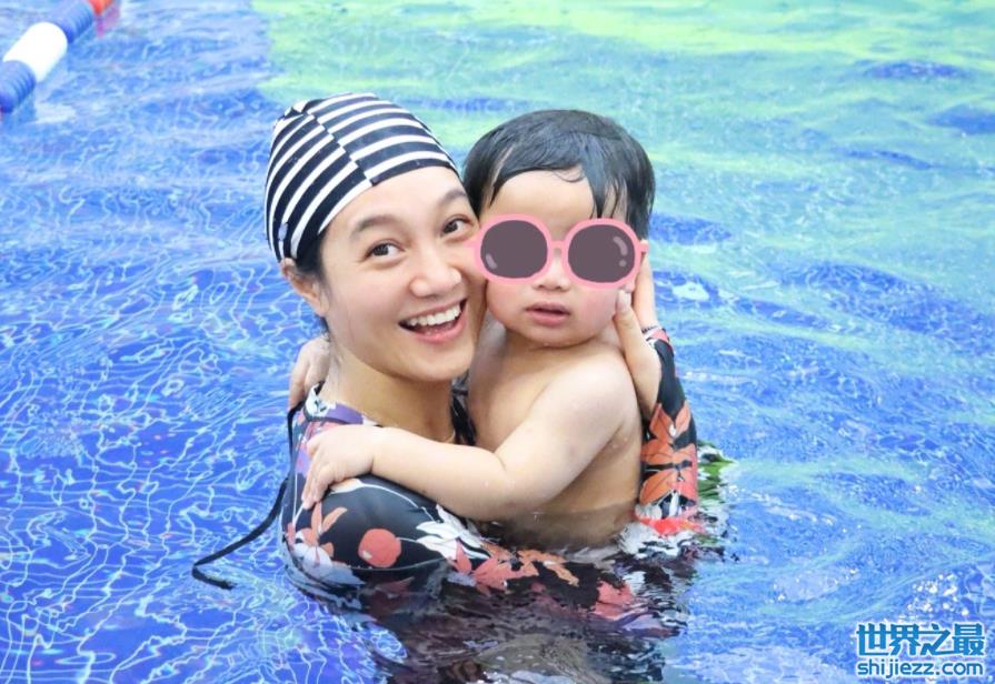 40岁朱丹带孩子泳池玩闹!穿泳装身材纤瘦,素颜泡水中皮肤无瑕疵 ...