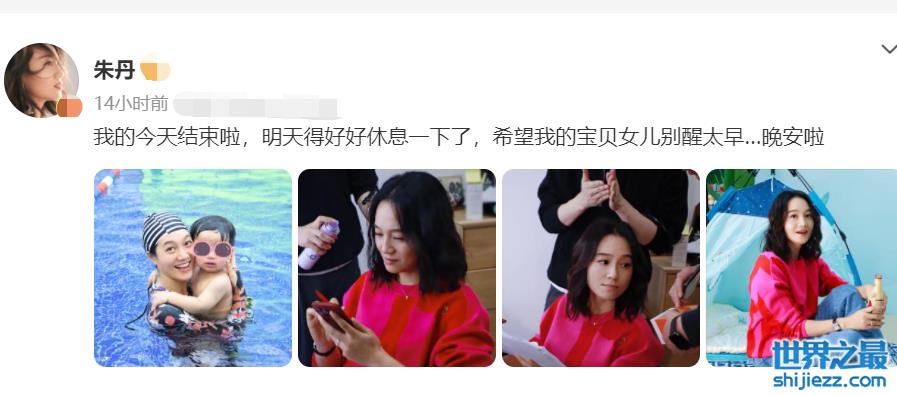 近日,朱丹在某社交平台发布了一条动态,她分享了自己的工作间隙以及陪儿子游泳的照片,并配文称“我的今天结束啦,希望我的宝贝女儿别醒太早”,从她文字中不难看出边工作边带娃的辛苦。