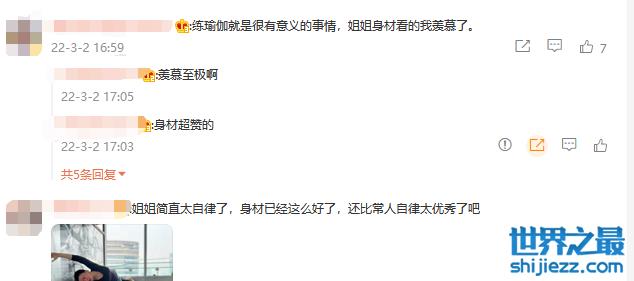 网友们纷纷在评论区留言,表示好羡慕朱珠的身材,觉得做瑜伽就是很有意义的事情。还夸赞朱珠十分的自律,其实身材已经很好了,但还是一直坚持运动。