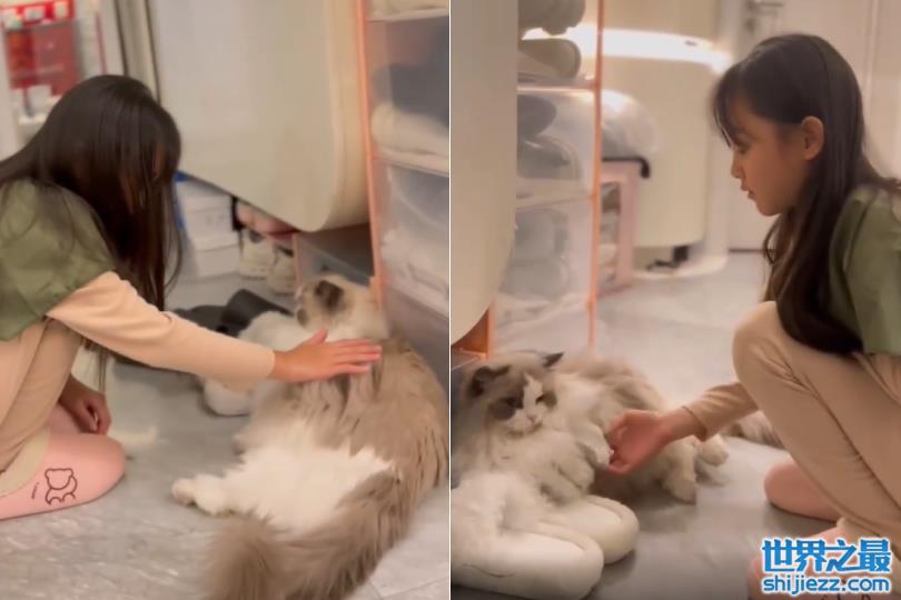 或许剪完头发一身轻松,甜馨的心情看起来很好,便和一旁的小猫咪玩了起来。不知道是不是天气太干燥有静电的原因,甜馨把小猫都摸得炸毛了。