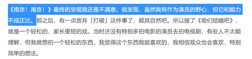 其实早先在《人物》的访谈当中,她也曾聊到过这件事,说自己虽然有作为演员的野心,但它和能力不成正比。